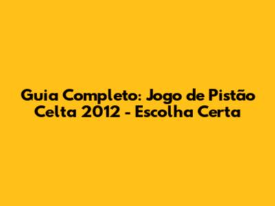 Guia Completo: Jogo De Pistão Celta 2012 - Escolha Certa