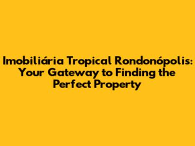 Imobiliária Tropical: Your Rondonópolis Real Estate Experts