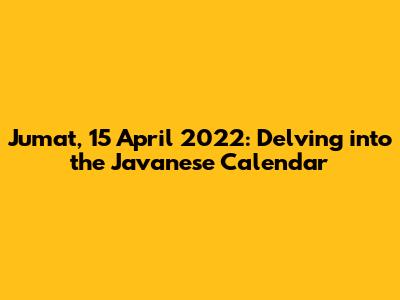 Hey guys, let's dive into something super cool and culturally rich: the Javanese Calendar! Today, we're taking a look at Friday, April 15th, 2022, and figuring out what the Javanese Calendar says about that date. This calendar is a fascinating blend of the Islamic lunar calendar and the ancient Javanese Hindu-Buddhist system. It's not just about marking days; it’s packed with cultural significance, traditions, and even a bit of mysticism. So, grab your coffee, settle in, and let's unravel the secrets of this unique calendar!