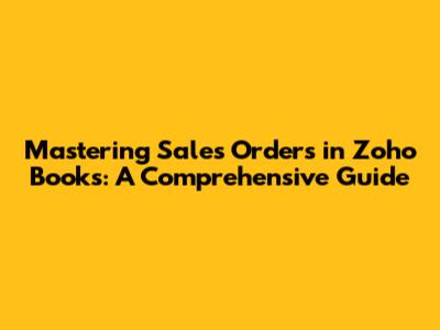 Mastering Sales Orders In Zoho Books: A Comprehensive Guide