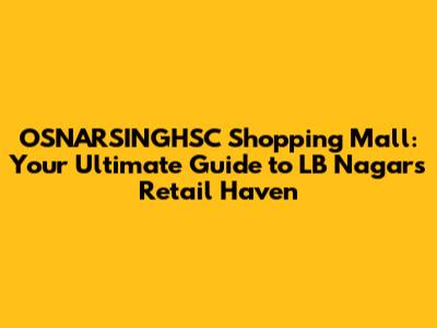 Hey everyone! Are you ready to dive into the vibrant world of OSNARSINGHSC Shopping Mall in LB Nagar? If you're looking for a one-stop destination for shopping, entertainment, and dining, then you've absolutely come to the right place. This guide is your ultimate companion to navigating everything this bustling mall has to offer. We'll explore the various stores, discuss the food options, and give you the lowdown on how to make the most of your visit. So, grab a coffee, settle in, and let's get started!