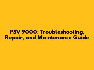 PSV 9000: Troubleshooting, Repair, And Maintenance Guide