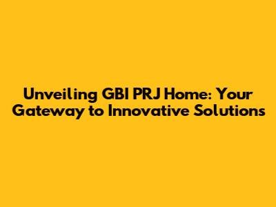 Unveiling GBI PRJ Home: Your Gateway To Innovative Solutions