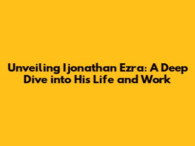 Hey everyone! Today, we're diving deep into the fascinating world of Ijonathan Ezra. I'm gonna break down who he is, what he's all about, and what makes him such a compelling figure. So, grab your favorite drink, sit back, and let's get started. We'll be exploring his journey, achievements, and impact. Seriously, this guy has done some cool stuff, and I'm stoked to share it with you all. This is more than just a biography; it's a look at someone who's made a real difference. We'll examine how he's influenced others and the lasting mark he's leaving on the world. I'm excited to share this with you; it's going to be an awesome ride. Get ready to learn some fascinating details about Ijonathan Ezra's life and work, and I hope you'll enjoy it as much as I enjoyed putting it together! I'll cover his early life, career highlights, and major contributions. We'll also look at his values, vision, and how he's inspired people. You're going to get a well-rounded view, covering all aspects of his life. Let's start with a peek at his early years and what shaped him into the person he is today.